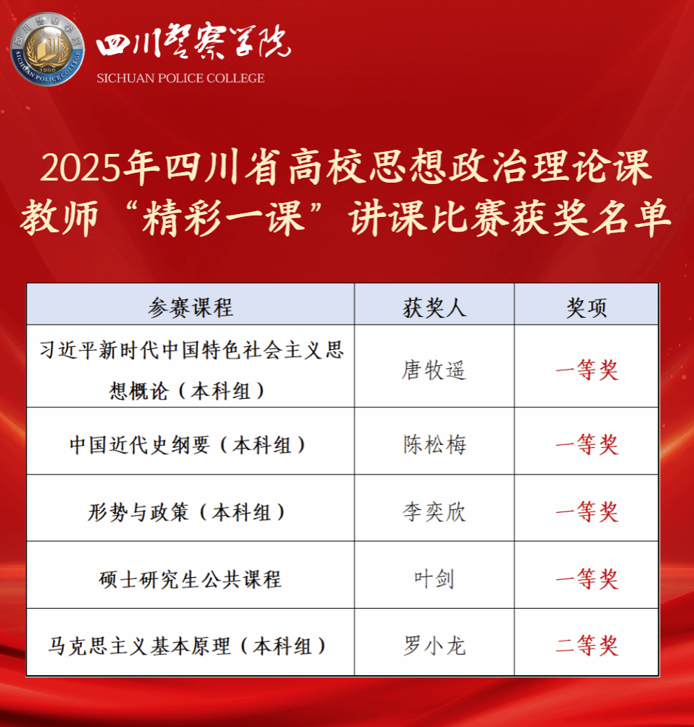 接下来,学校将对标对表全省、全国高校思政课教学展示活动,通过“以赛促教、以赛促学、以赛促改”,持续深化思政课教学改革,不断提升思政课的针对性、吸引力与时代感,为学校争创全国一流公安院校注入强劲动能。