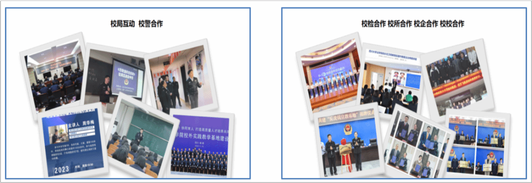 坚持实践类课程在人才培养方案中的设计与实施,系统开设独立实验课程和专业实践课程。坚持创新教学在人才培养过程中的探索与实践,创设“三实三促”教学演练法,引入boopps教学模式,开展鉴定式案例教学,打造“法治强音学习时”“习法有道”等特色课堂。坚持实务部门在人才培养体系中的融入与协同,通过“校局互动”,吸收地市州公安机关法制民警担任驻校教官,联合开展课堂教学、课程建设和科学研究。通过“校地联动”,梯次开展以法律职业共同体为主要成员的法学校外实践教学基地的培育、建设,持续推进以银行和保险公司为重要伙伴的“校-行-司”三方校企合作。