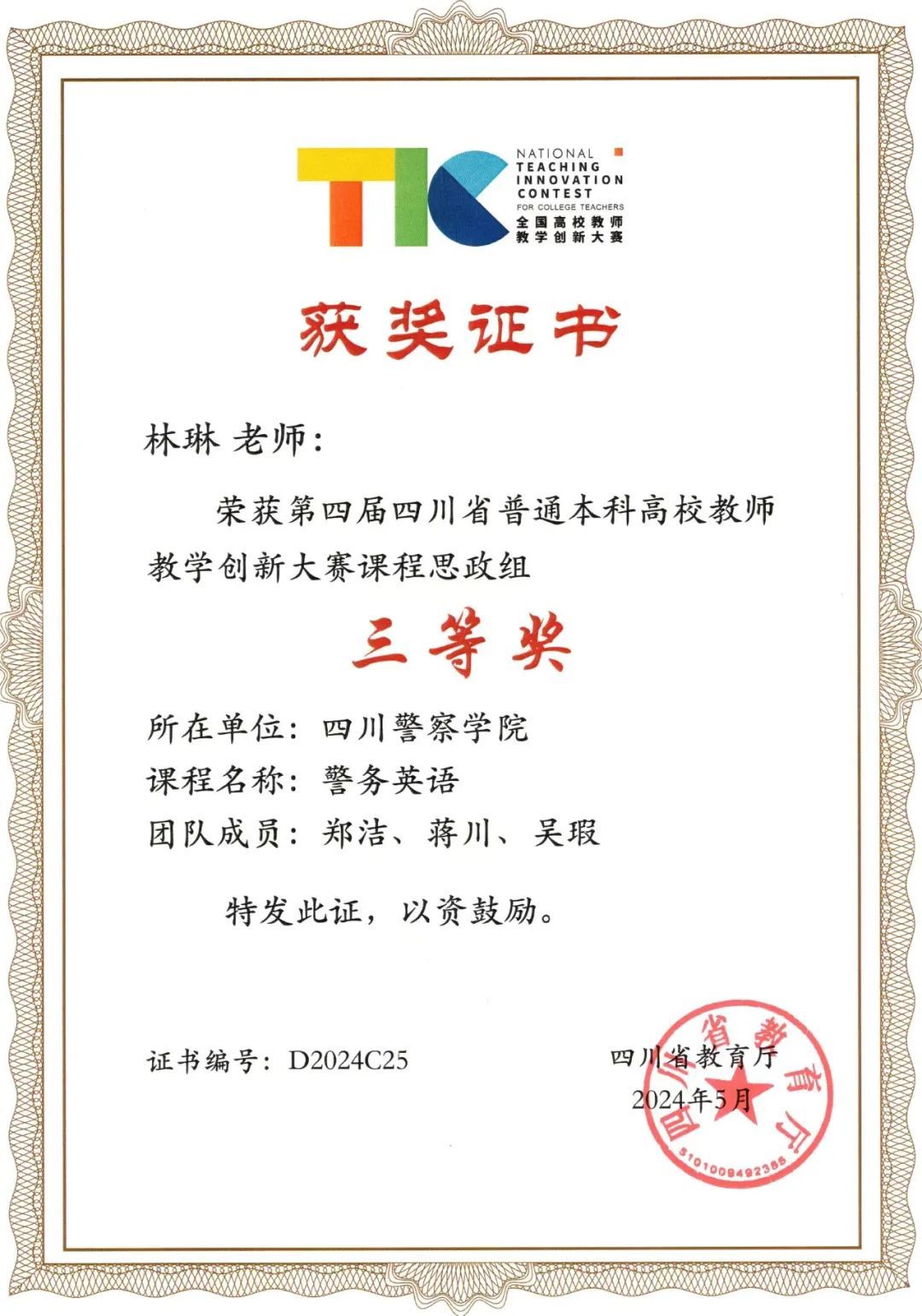 四川省教学创新大赛三等奖