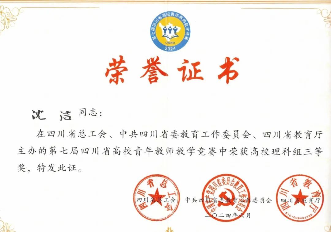 2名教师获四川省青年教师教学竞赛三等奖