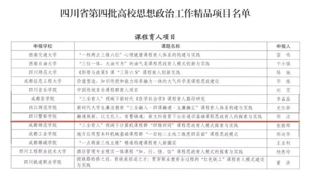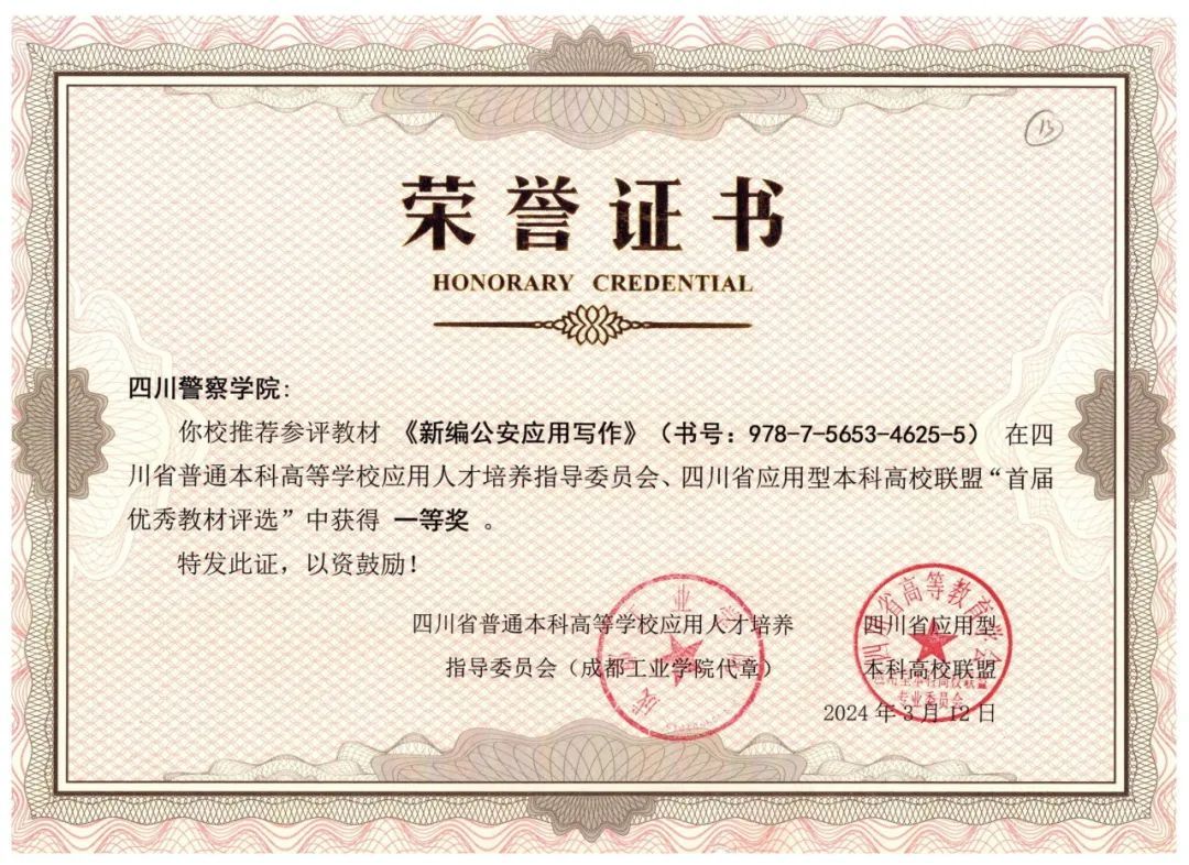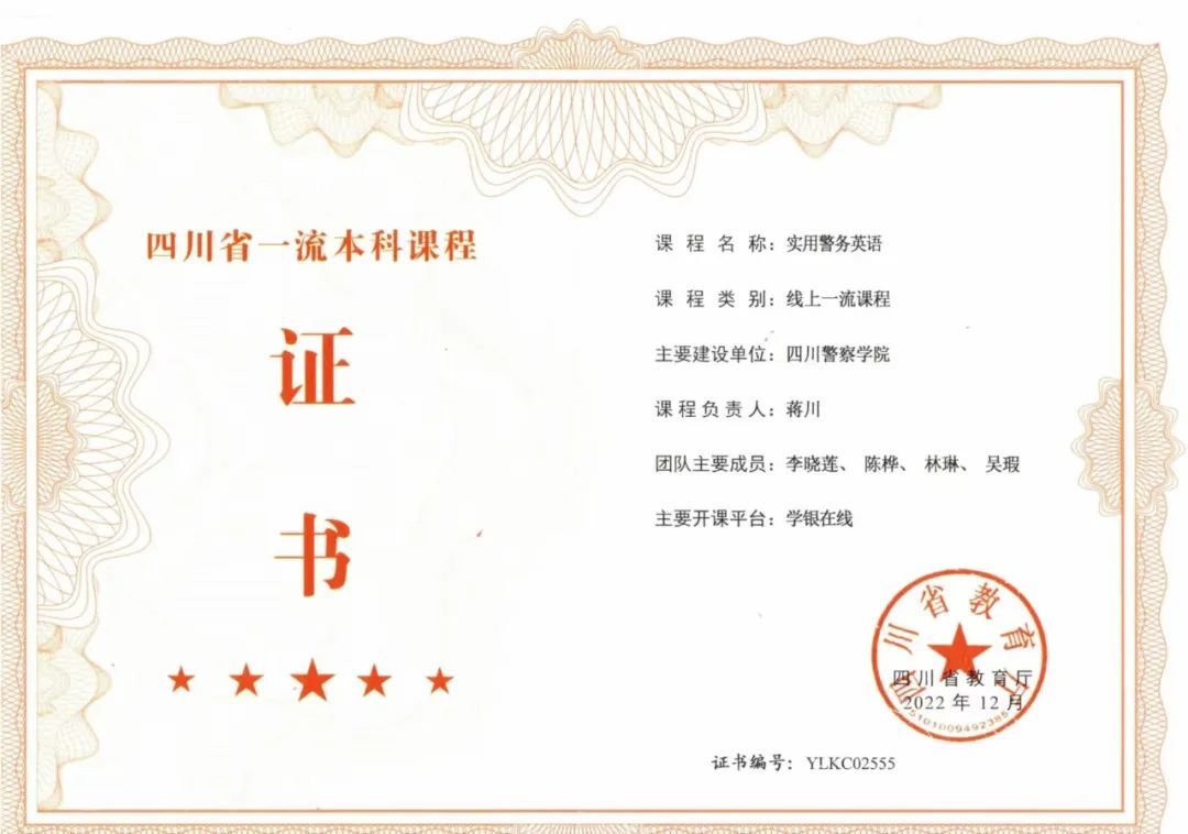 持续推进通识课程“金课”建设,紧贴公安教育实际,在教育教学各环节强化“学生中心、产出导向、持续改进”的教育理念,逐步形成通识课程与专业课程相互依托,协同发展的通识课程体系,将价值塑造、知识传授、能力培养融入通识教育教学全过程,着力帮助学生树立融通思维,构建多维度、可迁移的知识体系。2020年以来,公开出版教材4部、校级“十四五”规划2部,其中《新编公安应用写作》获第一批四川省“十四五”普通高等教育本科规划教材,被四川省普通本科高等学校应用人才培养指导委员会、四川省应用型本科高校联盟列为首届优秀教材。“大学英语”和“大学语文”获评省级课程思政示范课程;“实用警务英语”等5门课程获评四川省一流本科线上课程。2022年“智慧教学交融、赋能涉外警务——公安院校英语混合式实践教学体系的构建与实施”获四川省高等教育教学成果奖二等奖。